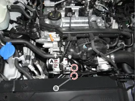 Generatorsteckverbinder (A) und Generatorkabel "B" (B) abklemmen.