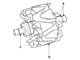 Statorkabel abklemmen, dann die Gleichrichtereinheit (A) ausbauen.