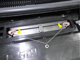 Reparaturverfahren Ausbau 1. Batteriemassekabel abklemmen. 2. Aufprallpolster-Hauptteil ausbauen. (Siehe Karosserie - "Hauptarmaturenbrett") 3. Steckverbinder von der Wegfahrsperren-Einheit abziehen und dann die Wegfahrsperren-Einheit (A) abziehen, nachdem