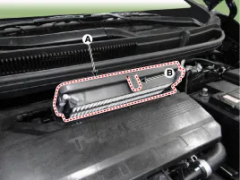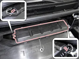 Reparaturverfahren Ausbau 1. Batteriemassekabel abklemmen. 2. Aufprallpolster-Hauptteil ausbauen. (Siehe Karosserie - "Hauptarmaturenbrett") 3. Steckverbinder von der Wegfahrsperren-Einheit abziehen und dann die Wegfahrsperren-Einheit (A) abziehen, nachdem