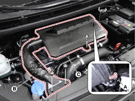 Luftkanal (B) abtrennen und dann den Luftfilter (C) entfernen.