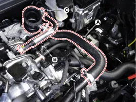 Schelle (A) des Lufteinlassschlauchs lösen.