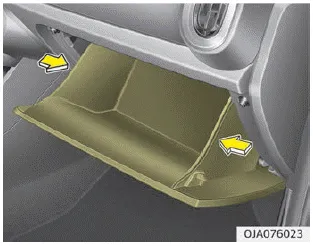 1. Öffnen Sie das Handschuhfach und drücken Sie das Handschuhfach auf beiden Seiten nach unten.