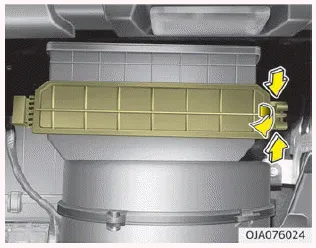 Der Luftfilter der Klimaanlage muss laut Wartungsplan ersetzt werden. Wenn das Fahrzeug über einen längeren Zeitraum in Großstädten mit hoher Luftverunreinigung oder auf unbefestigten, staubigen Straßen eingesetzt wird, muss der Filter häufiger geprüft und früher ersetzt werden. Wenn Sie den Luftfilter der Klimaanlage ersetzen, ersetzen Sie ihn auf folgende Art und Weise und gehen Sie sorgfältig vor, um eine Beschädigung anderer Bauteile zu vermeiden.