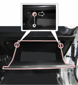 Die Stifte (B) abnehmen und das Handschuhfach (C) ausbauen.