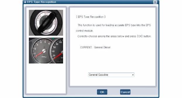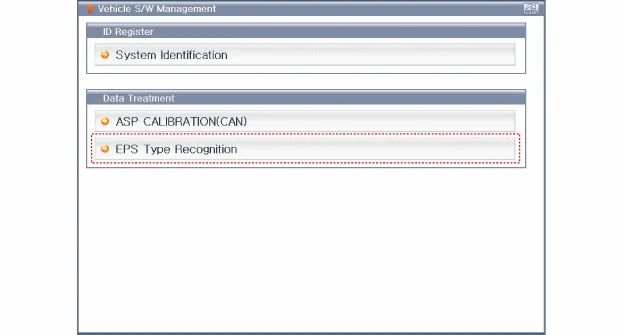 Nach der Auswahl des Fahrzeugmodells und des Systems "EPS Typerkennung" auf dem GDS-Bildschirm auswählen.