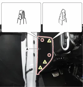 Armaturenbrett-Seitenverkleidung [LH] (A) mit einem Ausbauwerkzeug entfernen.