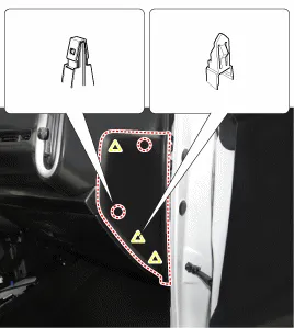 Vordere Türeinstiegsverkleidung (A) mit einem Ausbauwerkzeug entfernen.