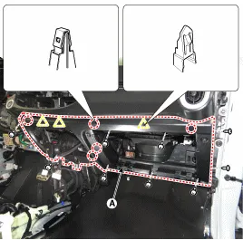 Schrauben lösen, dann die untere Armaturenbrettverkleidung (A) entfernen.