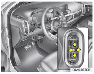 Zusätzlich können Sie an diesen Düsen die Richtung des Luftstroms durch Betätigung des Einstellhebels verändern, siehe Abbildung.