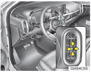 Zusätzlich können Sie an diesen Düsen durch Betätigung des Einstellhebels die Richtung des Luftstroms verändern (siehe Abbildung).