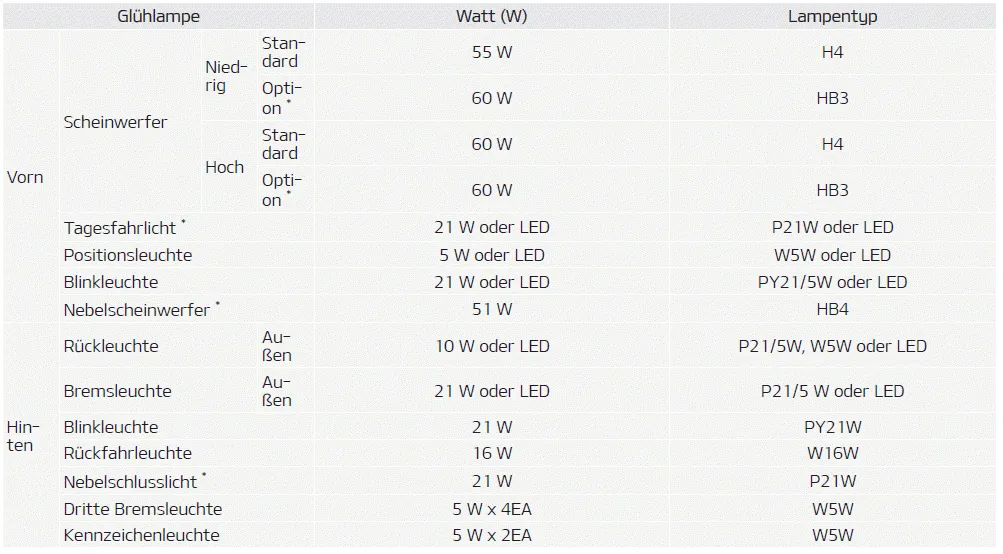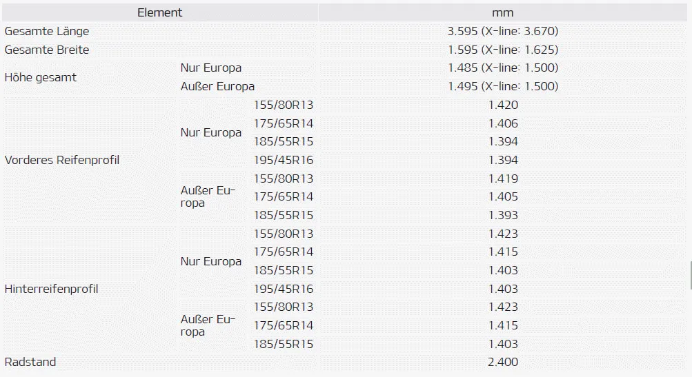 Nur Europa Außer Europa HINWEIS Wir empfehlen, dass Sie beim Reifenwechsel die gleichen Reifen verwenden, die ursprünglich mit dem Fahrzeug geliefert wurden.