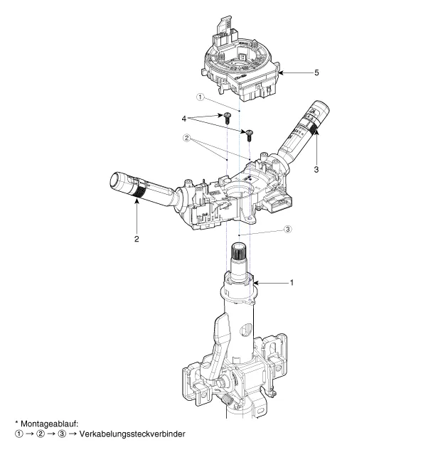 | 1 . Lenksäulenwelle 2 . Lichtschalter 3 . Wischer-/Waschanlagenschalter |