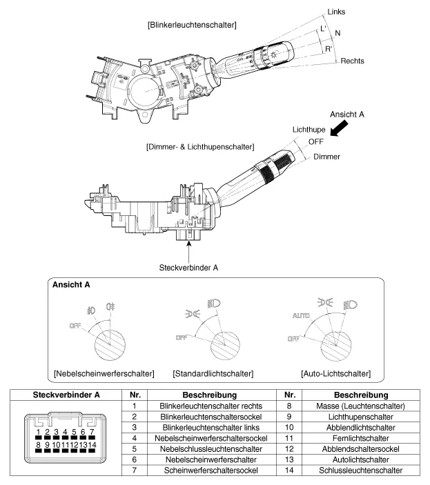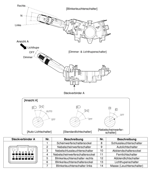 | (Blinkerleuchtenschalter/Umblend- und Lichthupenschalter) |