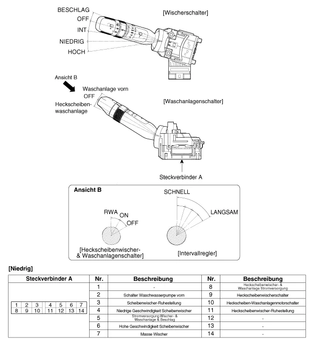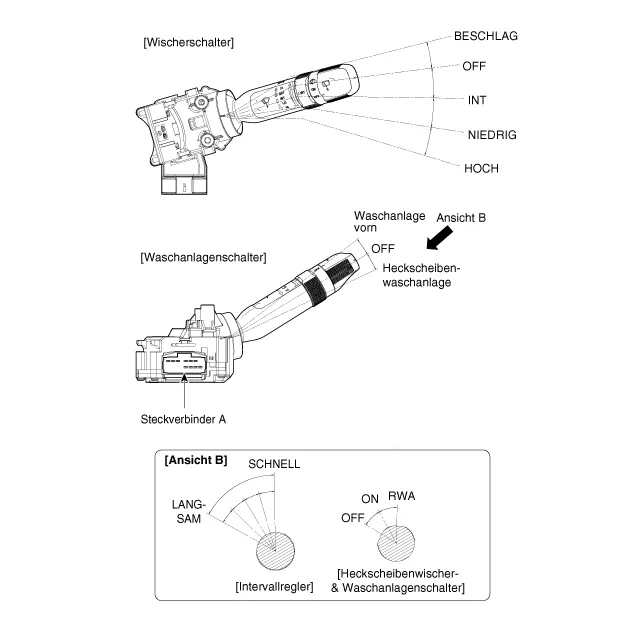 Scheibenwischer und Waschanlagenschalter (Linkslenkung)