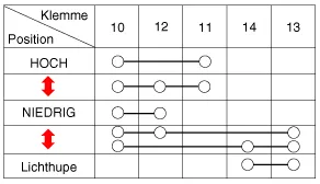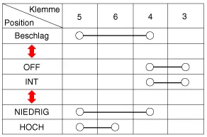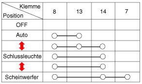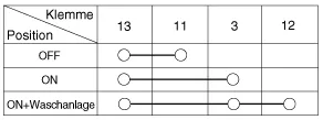 In den einzelnen Schalterpositionen zwischen den Klemmen wie unten gezeigt auf Durchgang prüfen.