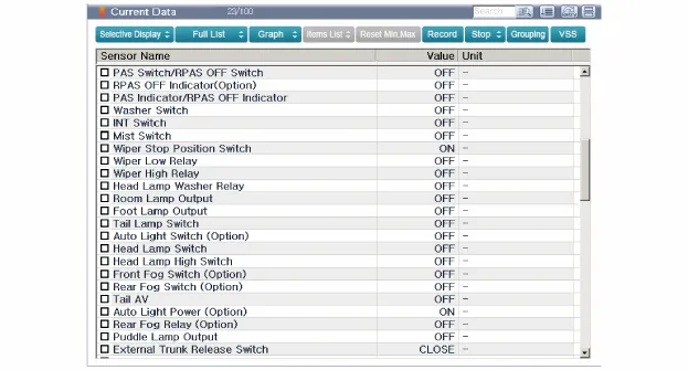 Fehler in der Karosserieelektrik können mithilfe des Fahrzeugdiagnosesystems (KDS/GDS) schnell diagnostiziert werden. Das Diagnosesystem (KDS/GDS) liefert die folgenden Informationen.