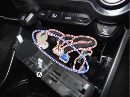 Steckverbinder (A) von der vorderen Einfassung der Bodenkonsole abziehen.