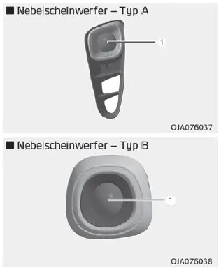 Wenn der Nebelscheinwerfer (1) nicht funktioniert, lassen Sie das Fahrzeug von einer Fachwerkstatt überprüfen. Kia empfiehlt den Besuch eines Kia- Händlers/Servicepartners.