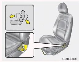 Um den Sitz nach vorn oder nach hinten zu bewegen: 1. Ziehen Sie den Einstellhebel zum Verschieben des Sitzes nach oben und halten Sie ihn in der Position.