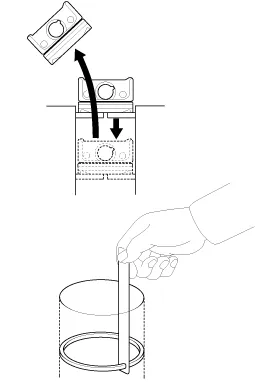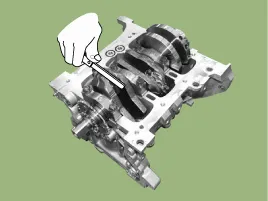 2 Schrauben, Pleuellagerdeckel und untere Lagerschale abbauen.