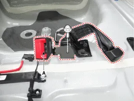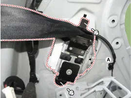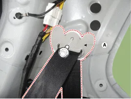 Befestigungsschraube lösen, dann Rücksitzgurtaufroller (A) entfernen.
