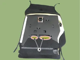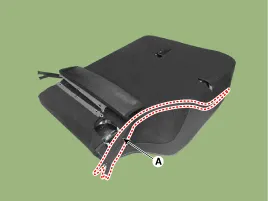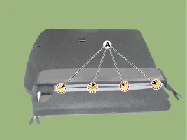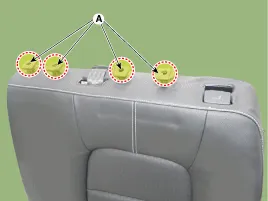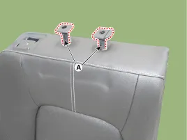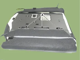 Seitliche Befestigungshaken (A) des Rücksitzlehnenbezugs lösen.