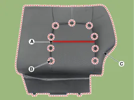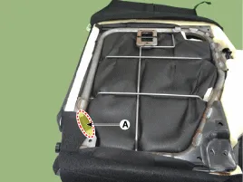 Befestigungshaken (A) des Rücksitzlehnenbezugs lösen.