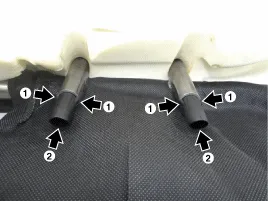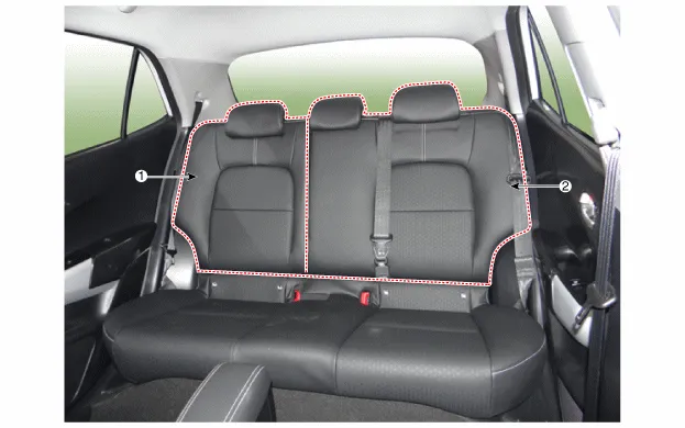 Bauteile und bauteile-Übersicht BAUTEILE-ÜBERSICHT 1. Rücksitzpolster 2. Rücksitzlehne Reparaturverfahren AUS- UND EINBAU Handschuhe anziehen, um die Hände zu schützen.