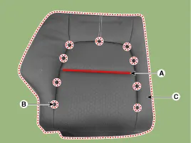 Bauteile und bauteile-Übersicht BAUTEILE-ÜBERSICHT 1. Sitzpolsterbezug Rücksitz Reparaturverfahren AUS- UND EINBAU Handschuhe anziehen, um die Hände zu schützen.