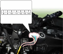 Reparaturverfahren PRÜFUNG 1. Zwischen den Klemmen auf Durchgang prüfen. Wenn der Durchgang nicht der Vorgabe entspricht, den Warnblinkerschalter ersetzen. Nr. Beschreibung Nr.