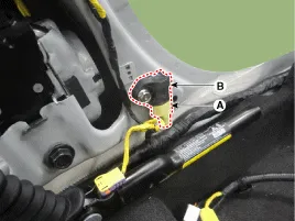 Befestigungsschraube lösen, dann Seitenaufprallsensor (B) ausbauen.