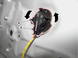 Druckempfindlichen vorderen Seitenaufprallsensor (B) um 90° entgegen dem Uhrzeigersinn drehen und abtrennen.