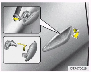 Wenn die seitliche Blinkleuchte (1) nicht funktioniert, lassen Sie das Fahrzeug von einer Fachwerkstatt überprüfen. Kia empfiehlt den Besuch eines Kia- Händlers/Servicepartners.