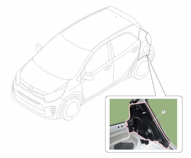 Bauteile und bauteile-Übersicht BAUTEILE-ÜBERSICHT 1. C-Säulenverkleidung Reparaturverfahren AUS- UND EINBAU Handschuhe anziehen, um die Hände zu schützen.