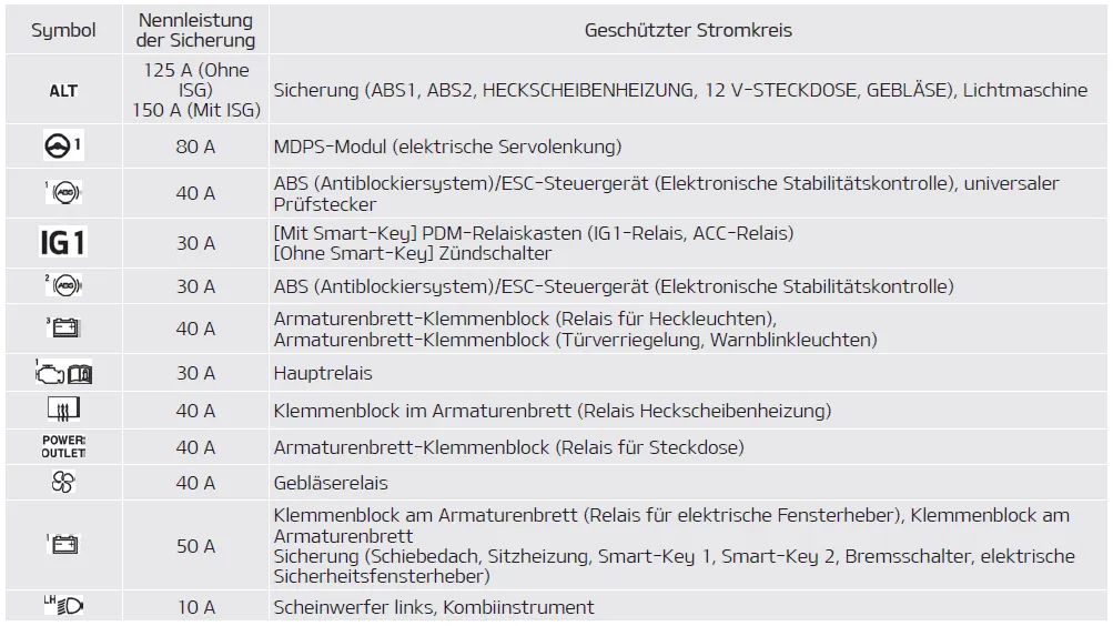 Armaturenbrett (Sicherungskasten auf der Fahrerseite)