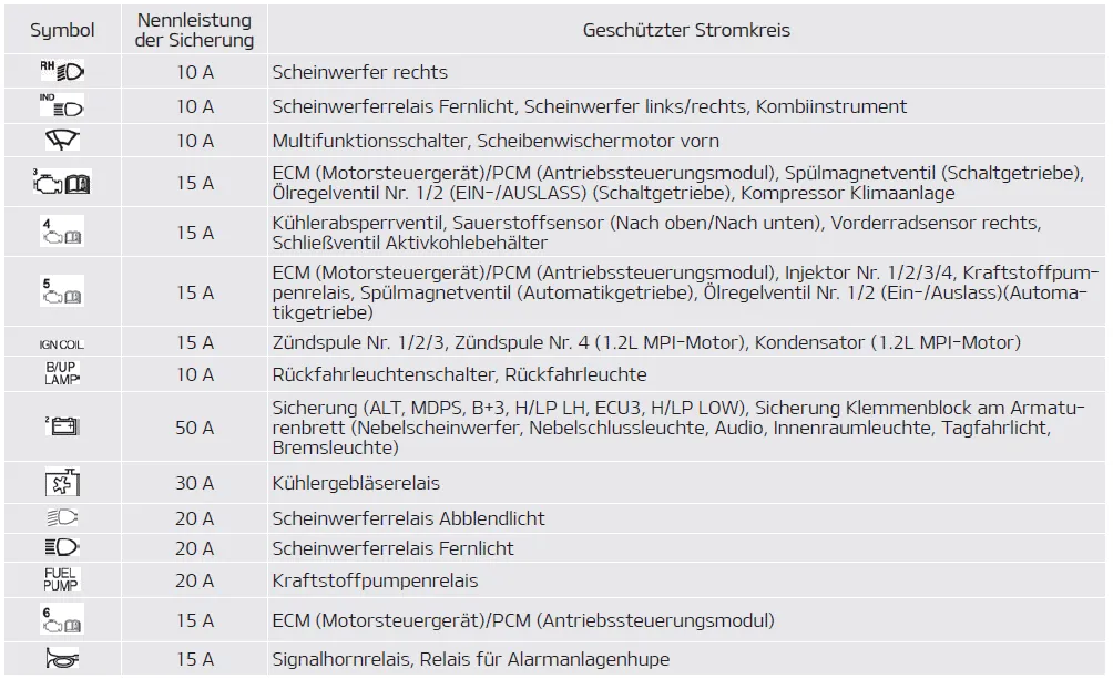 Sicherungskasten im Motorraum (Kappa 1,0L/1,2L MPI Benzinmotor)