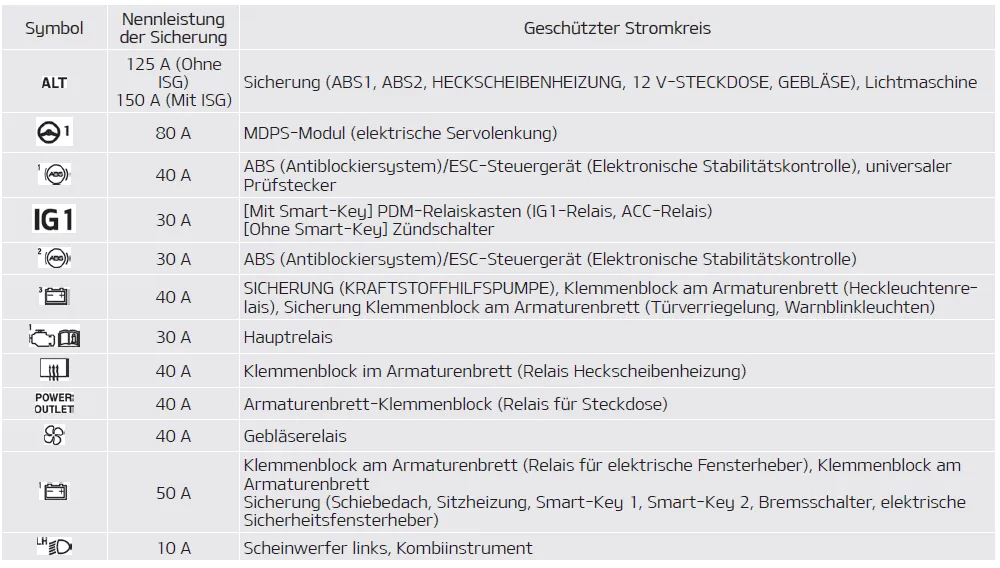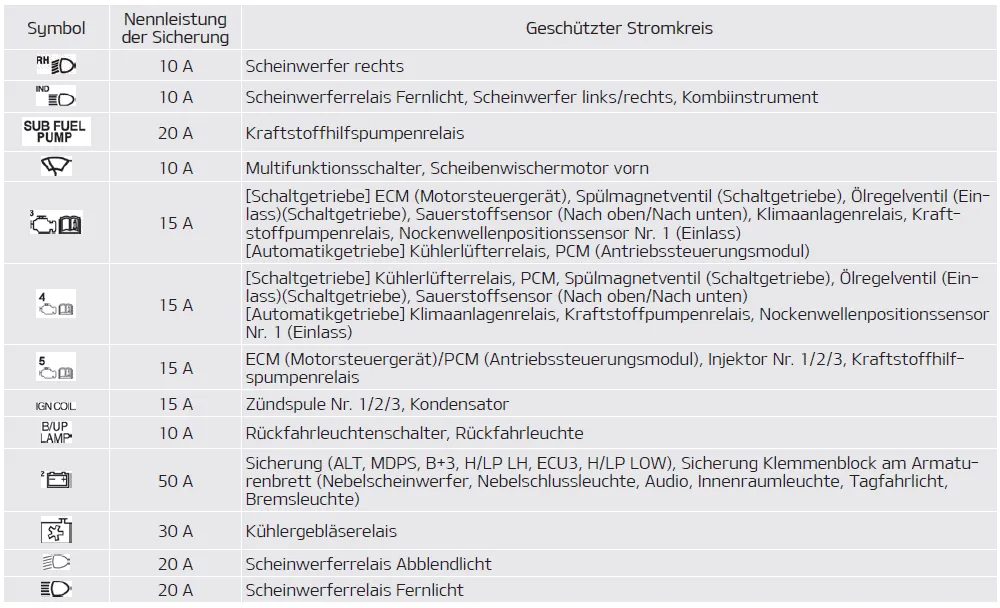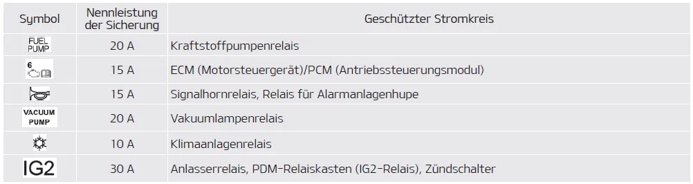 Sicherungskasten im Motorraum (Kappa 1,0L MPI-Motor (FFV))