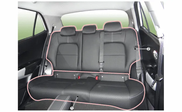 Bauteile und bauteile-Übersicht BAUTEILE-ÜBERSICHT 1. Rücksitzlehnenbezug [RH] 2. Rücksitzlehnenbezug [LH] Reparaturverfahren AUS- UND EINBAU Handschuhe anziehen, um die Hände zu schützen.