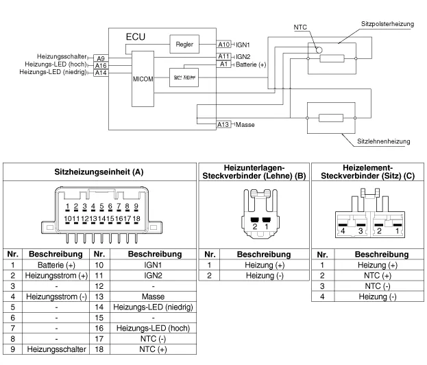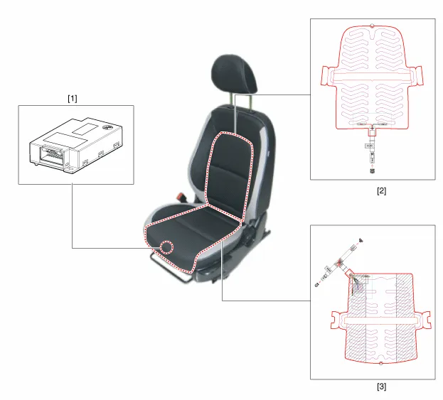 | 1. Sitzheizungseinheit 2. Vordersitzlehnenheizung |