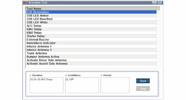 Mit dem KDS/GDS können Defekte am SMART KEY-System schnell erkannt werden. Das KDS/GDS kann den Stellantrieb mit Gewalt betätigen, den Eingabe-/Ausgabewert überwachen und die Selbstdiagnose durchführen.