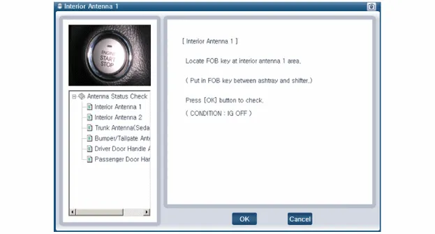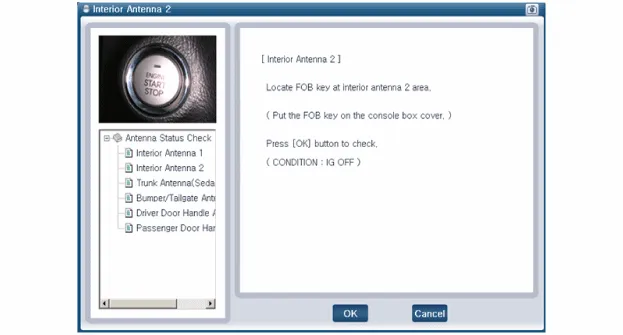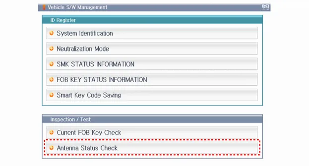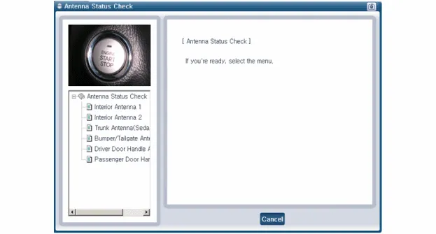 Nach Einschalten der Zündung "Antenna Status Check" wählen.