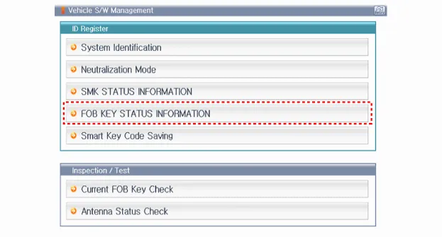 Nach Einschalten der Zündung "FOB KEY STATUS INFO" wählen.