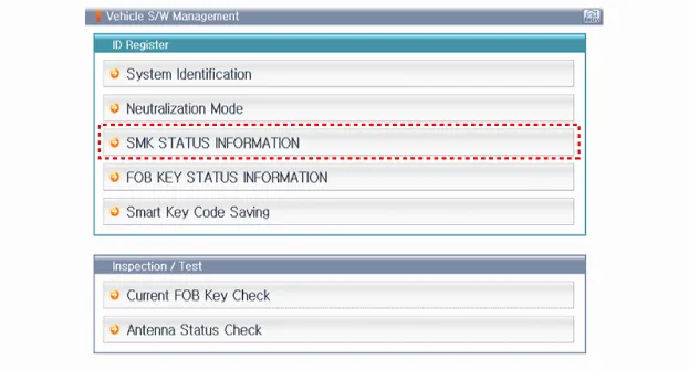 Nach Einschalten der Zündung "SMK STATUS INFO" wählen.