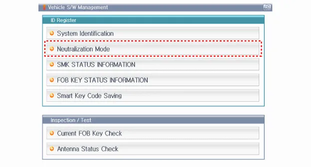 Nach Einschalten der Zündung "Neutralization mode" wählen.