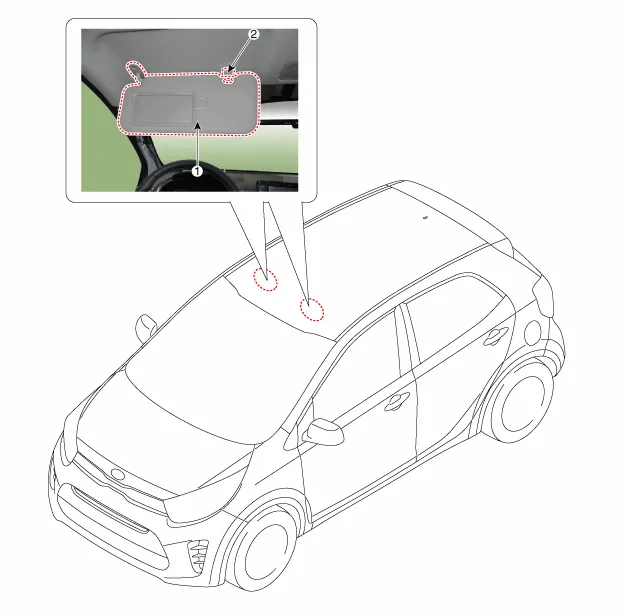 Bauteile und bauteile-Übersicht BAUTEILE-ÜBERSICHT (1) (Normal) 1. Sonnenblende 2. Dachhimmel komplett 3.
