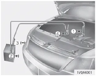 Klemmen Sie die Klammern der Starthilfekabel in der numerischen Reihenfolge an und nehmen Sie die Kabelklammern in der umgekehrten Reihenfolge ab.