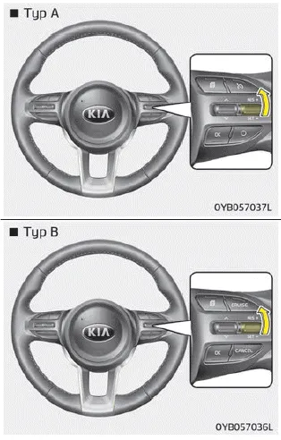 1. Drücken Sie die Taste /CRUISE am Lenkrad, um das System einzuschalten. Die Tempomat-Kontrollleuchte leuchtet auf. 2. Beschleunigen Sie bis auf die gewünschte Geschwindigkeit, die über 30 km/h liegen muss.