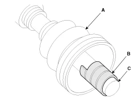 Verzahnung der Antriebswelle (C) mit Klebeband (B) umwickeln, damit der Faltenbalg (A) nicht beschädigt wird und wieder verwendet werden kann.