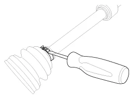 Verzahnung der Antriebswelle (TJ) mit Klebeband umwickeln, damit der Faltenbalg beim Abziehen nicht beschädigt wird.